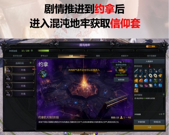 約拿的時候我們就可以打約拿的混沌地牢了。叫做信仰套。