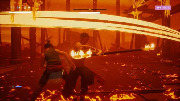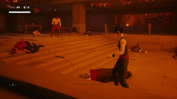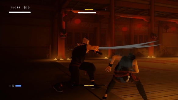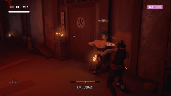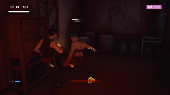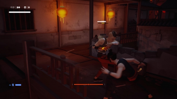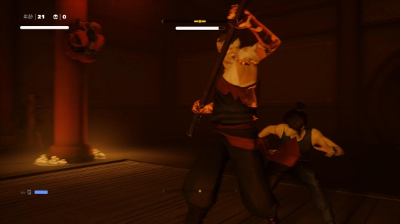 上門後遇到精英敵人,敵人的攻擊方式為三下上段攻擊後接掃堂腿,手掌發光的紅色重擊注意躲閃,注意不要被敵人從高處打落。