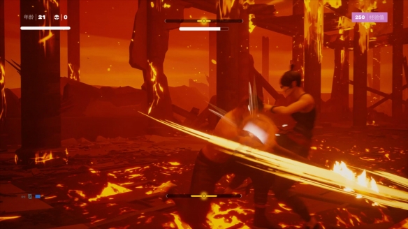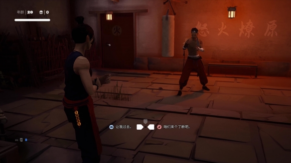 隨後遇到第二重試煉,重踢可以下掉敵人的武器,沒有武器後敵人多為上段攻擊,下段掃堂腿注意向後躲閃。