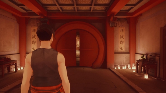 正前方的門被鎖住,右手邊門被打開,解決一眾弟子,注意不要被圍毆,敵人會掉落武器可以拾取逃課。