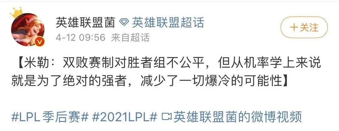 其實,這也並非是國內《英雄聯盟》戰隊第一次打雙敗賽制。早在S2時期,WE奪得IPL5冠軍時的賽制就為雙敗制。WE作為勝者組冠軍,決賽前就手握1-0的優勢,最終擊敗了敗者組的FNC收獲冠軍。當時,IPL5的規則是勝者組晉級戰隊將獲得決賽上一個小局的領先,而本次LPL季後賽則對勝者組的出線戰隊沒有這樣的優待。