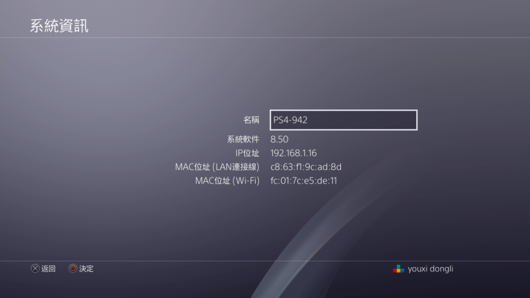 PS4主機名稱可以在PS4的【設定→系統→系統資訊】處查看。