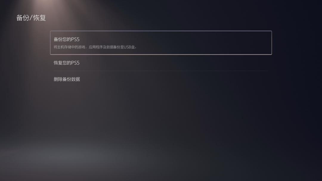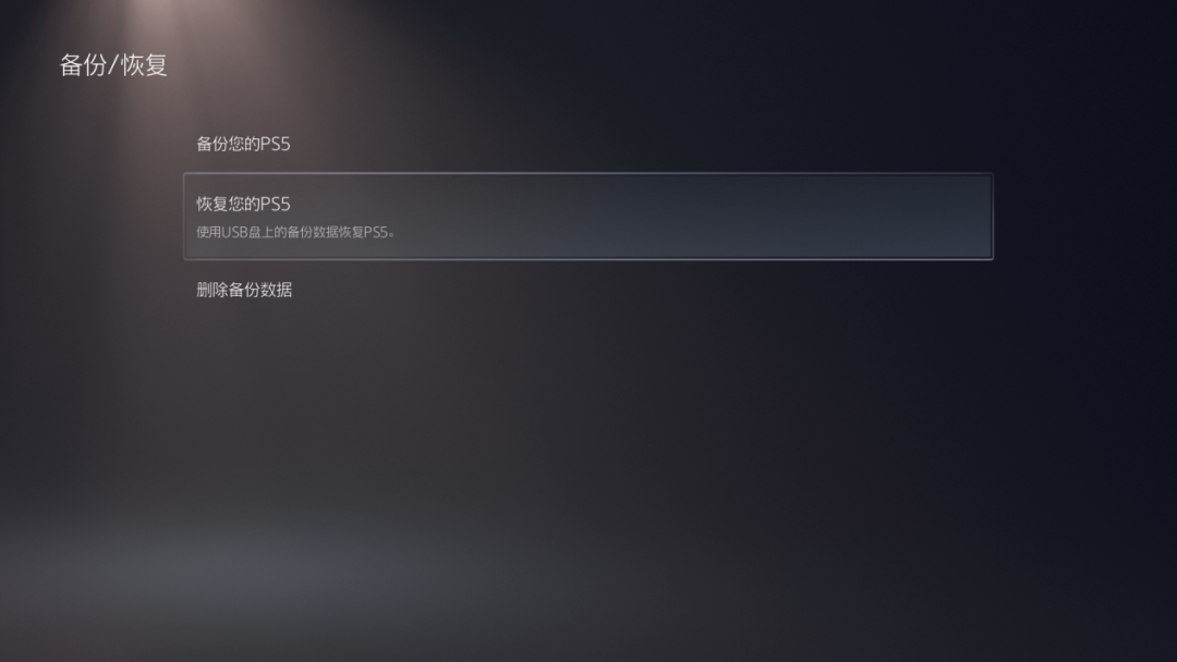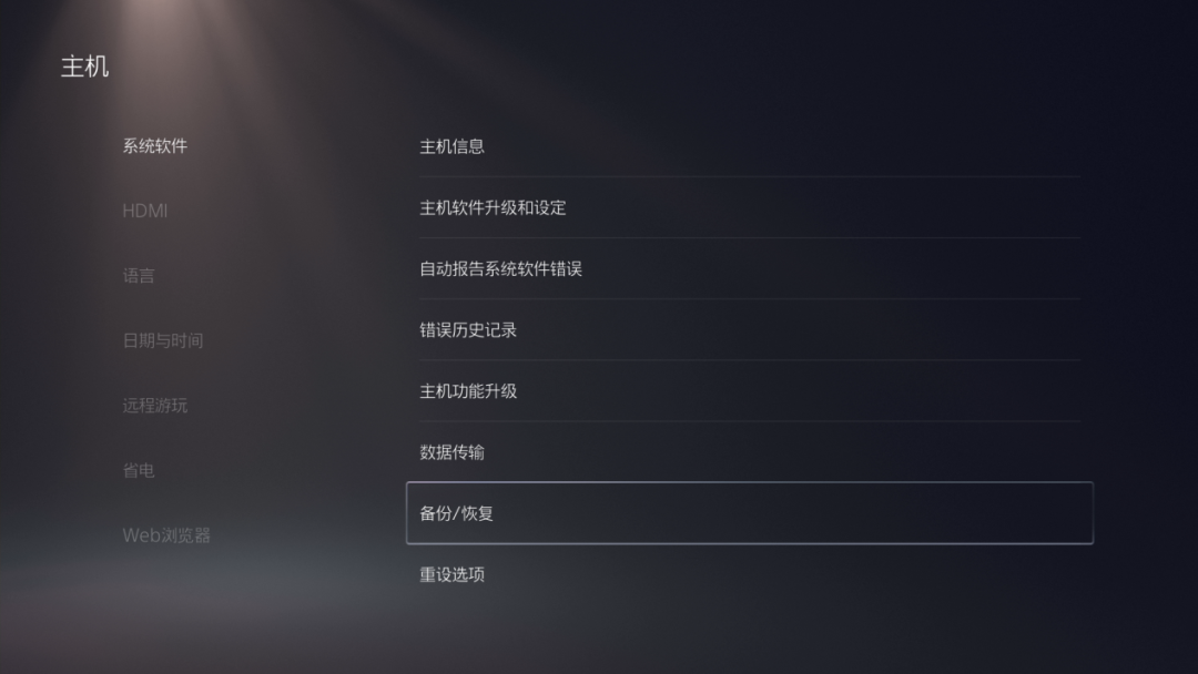 4.將帶有備份文件的U盤插在國行PS5上進入【設定→主機→備份/恢復→恢復PS5】即可完成備份。