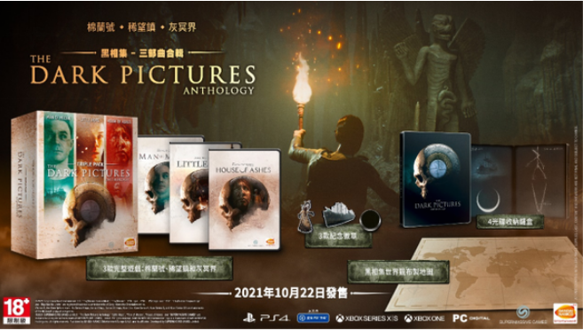 台灣萬代南夢宮娛樂今日宣布,《黑相集》的第三彈作品《黑相集:灰冥界》繁體中文版將於2021年10月22日推出PlayStation®5/PlayStation®4/Xbox Series X|S / Xbox One/PC Digital版。本作支援多種玩法,在單人模式中獨自品味恐怖緊張的時刻;或於線上合作模式雙人進行故事;此外,電影模式可同時讓最多5名玩家共同經歷這場驚魂旅程。同時,完整收錄《黑相集:棉蘭號》、《黑相集:稀望鎮》及《黑相集:灰冥界》游戲內容的《黑相集 – 三部曲合輯》繁體中文版將同步推出。
