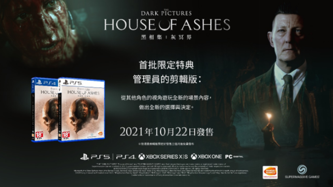 《黑相集:灰冥界》繁體中文版首批特典及《黑相集 – 三部曲合輯》繁體中文版內容公開購買首批PlayStation®5/PlayStation®4/Xbox Series X|S / Xbox One/PC Digital黑相集:灰冥界》繁體中文一般版的玩家可獲得限定特典:「管理員的剪輯版」下載代碼。