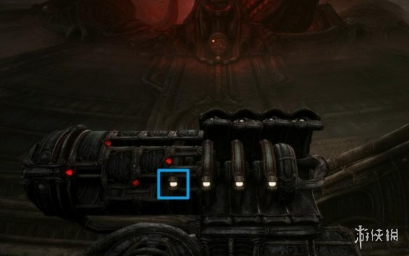 返回散發紅光的房間中,將四環鑰匙插入儀器中。