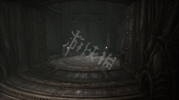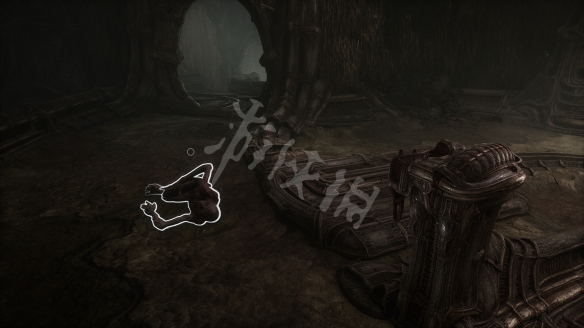 來到二層平台,往右再沿著小路下去,來到一扇半開的門前,靠近後與其交互,穿過去。