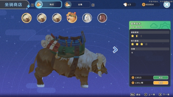 遊戲中目前坐騎種類有3種,分別是家養駝牛、駱駝和馬。