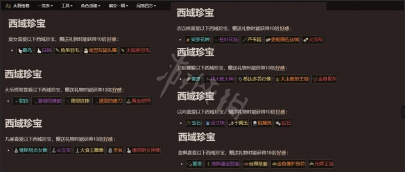 紫竹化身的好感可以通過贈送禮物來提高,他們最喜愛以下西域珍寶,贈送禮物時能獲得10倍好感。