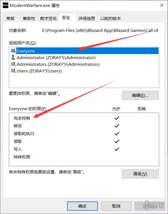 最後在游戲文件夾下面找到main文件夾,設置該文件夾的安全許可權,和上面一樣,新增一個Everyone的用戶,給完全控制的許可權。