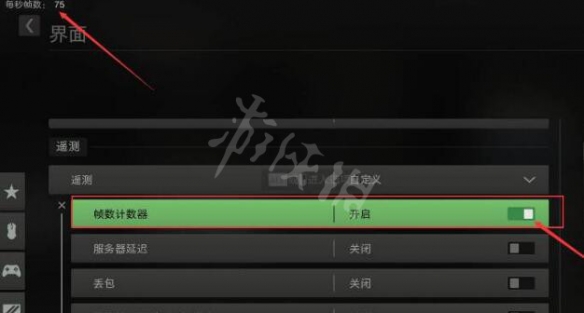 4、最後玩家找到幀數計數器選項並將其打開,打開後便可以在游戲界面左上角看到當前的幀數了。