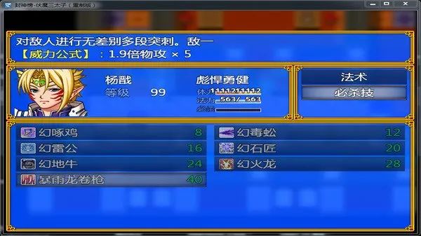 《封神榜 伏魔三太子》(重製版)由艾露比工作室傾力製作。完美保留原遊戲大部分特色:劇情,寶物,道具及地圖均完整重製。在此基礎之上,增加更多的裝備欄,取消了雙手武器的設定,在原來武器,衣服,鞋的基礎上,增加了兩個首飾位與一個坐騎位,讓裝備更加多樣化,戰鬥時需要根據不同人物合理搭配。另外重製版新增了四個隱藏人物,玩家可以在遊戲中完成一些收集材料的小任務,便可以邀請他(她)們加入,這些人物不但擁有專屬裝備,還擁有獨特的一套技能法術,讓戰鬥的組合更加千變萬化,每個人都可以玩出不同的戰術和效果。
