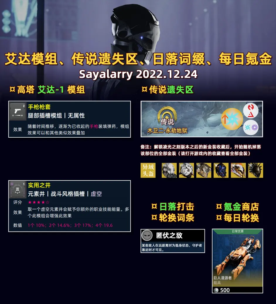 艾達模組、傳說遺失區、日落詞綴、每日氪金