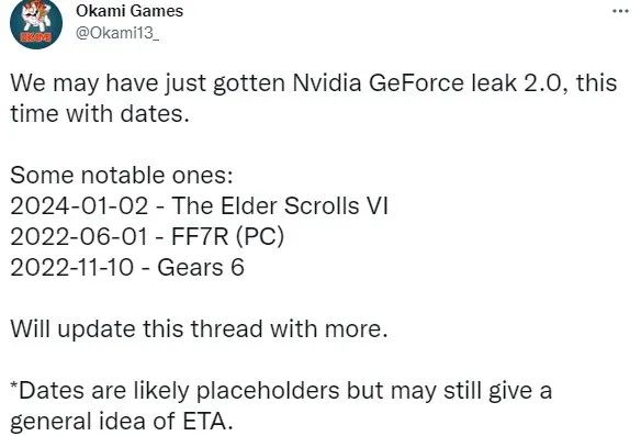 該名單泄露的發售時間有一定可信度,比如卡普空或在製作《生化危機4:重製版》,《黑神話:悟空》之前被曝將於2023年發售,《上古卷軸6》不會早於《神鬼寓言4》發售等。Okami13_也表示,這些遊戲的發售日期有些可能是佔位符,僅供參考。