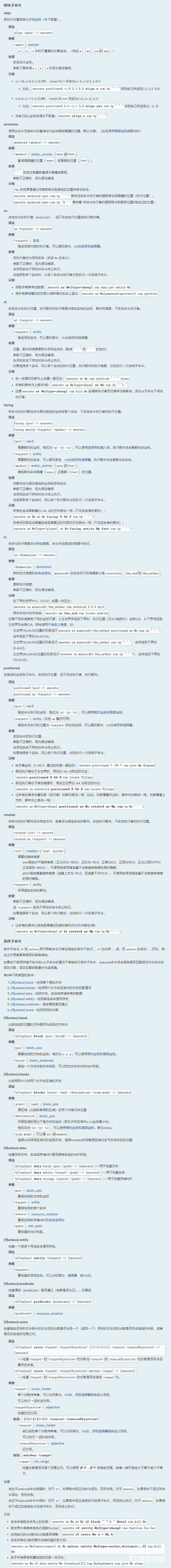 首頁 我的世界 問答 我的世界execute怎麼用? 2022-12-30 在我的世界這款遊戲里,指令【/execute】可以在改變執行者、執行位置和角度,添加限制條件,並儲存其輸出值的情況下執行另一條命令。其有修飾子命令和條件子命令如下。
