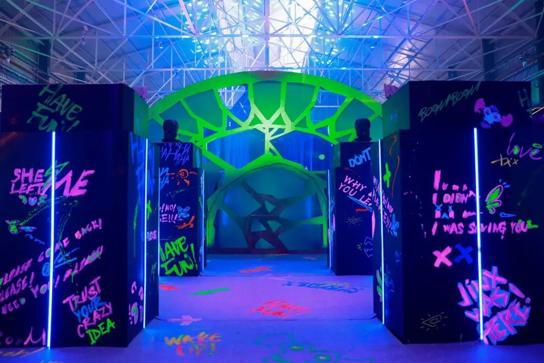 漫步現場,穿梭在紅藍交錯霓虹燈光之中,化身雙城居民的工作人員穿梭其中,金克絲的人生縮影也隨之展現,內心的狂躁不安與自卑的源頭,在一個個極富深意的互動裝置中揭開真相。進入祖安黑市與皮城議政大廳,雙城「風土人情」也隨著超高還原建築與沉浸式任務被觀眾所代入。