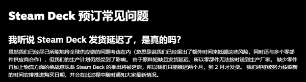 雖然我們已經盡己所能地將全球供應鏈的問題考慮在內(意思是說我們已經留出了額外時間來抵禦這些風險,同時還與多個零部件供應商合作),但我們的生產計劃仍然受到了影響。由於原料短缺且發貨延遲,所以零部件無法按時送到生產廠家。缺少零件再加上物流方面的挑戰意味著 Steam Deck 的推出將被延後,所以我們只能推遲兩個月,到 2 月才發貨。我們將繼續努力按照新的時間安排推進購買日期,並會在此過程中隨時通知大家最新情況。