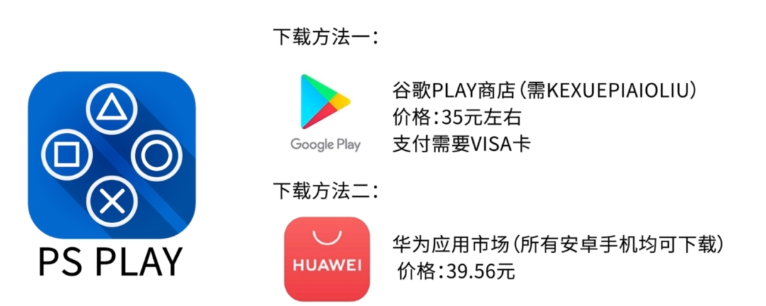 首先我們需要下載PS PLAY APP,這個軟體目前僅在安卓端有,可以通過科學漂流在谷歌play商店進行購買下載,此軟體購買價格,RMB折算在30多元,而谷歌的話目前只支持VISA卡,這裡估計就要卡住一大堆同學了。