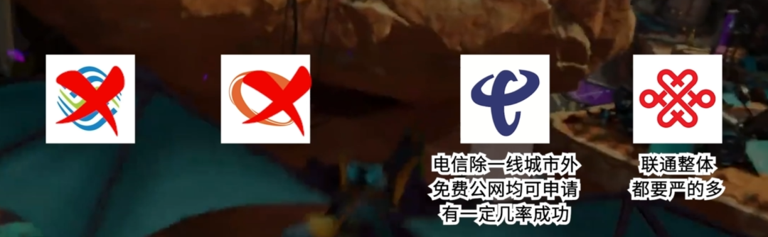 電信方面除了一線城市外,免費公網IP都還是可以申請的,也是有較大幾率成功的,