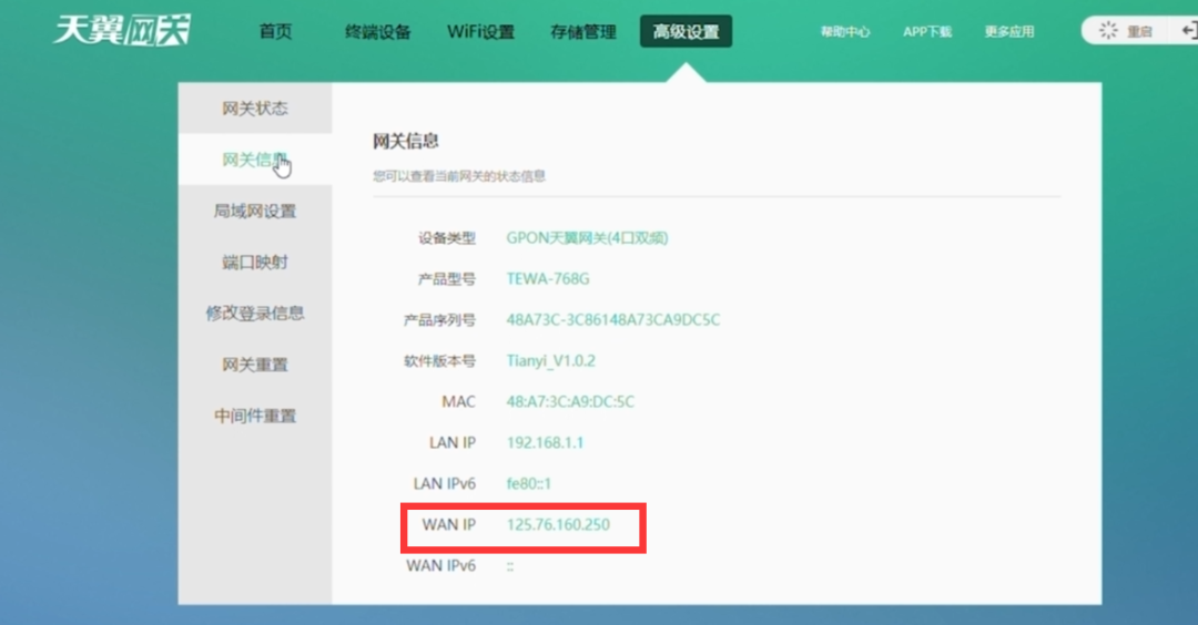 查看高級設置中的網關信息,查看WAN IP顯示的地址與百度查到的IP地址是否一直,如果一致那就表明你是公網IP,不是的話就是內網。