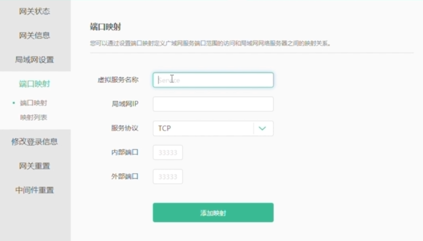 再然後來到路由器後台的埠映射