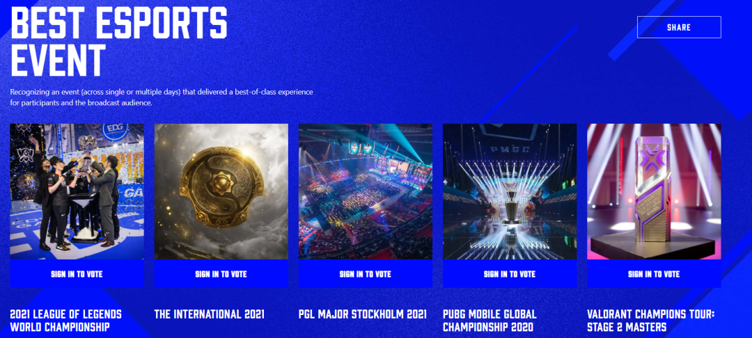 英雄聯盟2021賽季全球總決賽 2021年DOTA 2國際邀請賽 斯德哥爾摩2021 PGL主賽 絕地求生:大逃殺 手機版 2021全球錦標賽 無畏契約冠軍巡迴賽: 第二賽段大師賽