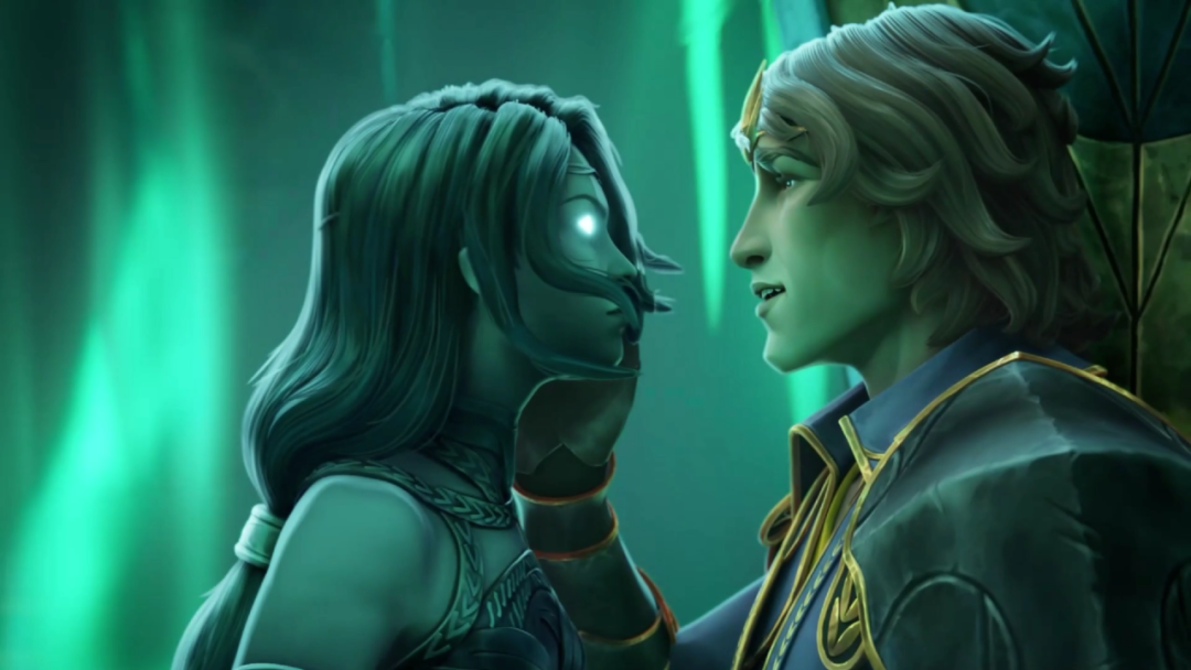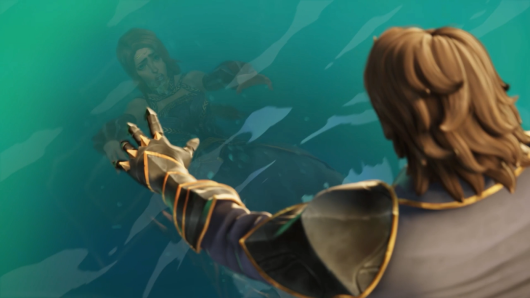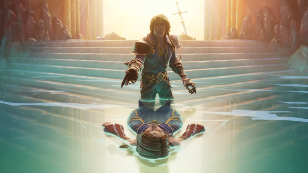 清澈而閃爍著微光的湖水逐漸帶走了伊蘇爾德的遺體,他不舍地伸出了手,試圖想要再擁抱一次曾經的愛人。他一直相信著,伊蘇爾德會回到他身邊,不論自己製造了多少的殺戮,不論付出多少的代價。