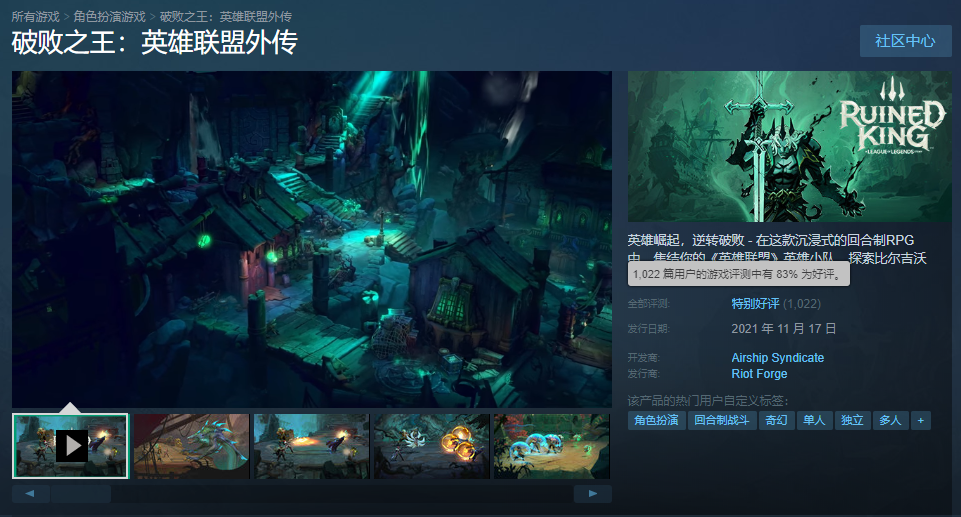 以上是屬於《破敗之王:英雄聯盟外傳》(以下簡稱 破敗之王)的背景故事。這款遊戲於昨日上線各大遊戲平台,隨後便迅速登頂銷量榜,目前在Steam獲得了83%的特別好評。據SteamDB的預估,遊戲的銷量大約在3萬份到9萬份之間。