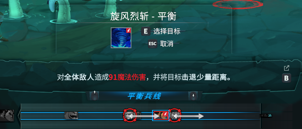首先,遊戲中英雄的戰鬥技能分為「立即技能」和「兵線技能」兩種。前者不需要消耗法力,在選擇目標之後馬上發動。而後者消耗法力,同時需要一定的吟唱時間。使用不同類型的技能,將會影響到英雄的行動順序。