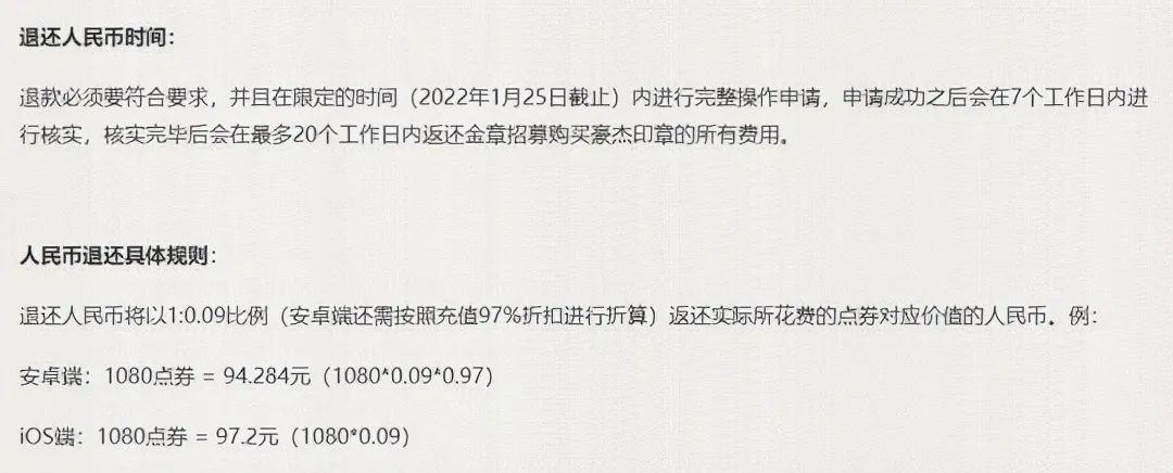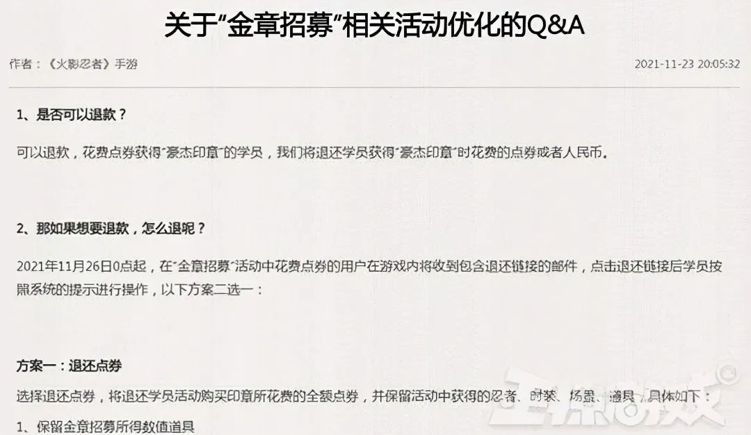 然後官方下架「金章招募」活動,並對已經購買的玩家全數退還點券,此外還可以選擇人民幣退款,而傳說時裝川劇版的自來的強度也進行調整,同時改為7天簽到免費獲得!