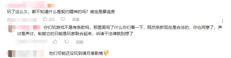 有網民提到:「以普遍理性而言,違反契約就該被懲罰」、「凡事都有代價」、「肯定要追責」。甚至不乏玩家調侃:「他們可能還沒有玩到璃月港(契約之國)劇情」