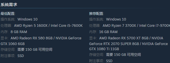 不止在主機版上所需空間龐大,在Steam商店頁面中系統需求顯示的《潛行者2:切爾諾貝利之心》大小也有150GB。