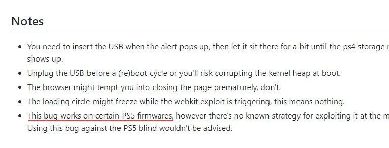 該破解軟體團隊稱,這次漏洞也可以在PS5上使用,但目前還不能觸發越獄,他們建議PS5玩家在獲得更多關於它如何影響系統的信息之前,不要嘗試破解PS5。