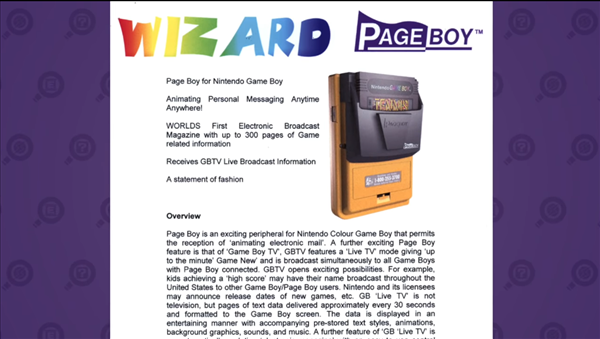 Robertson與任天堂參與PageBoy項目的人談到了這款設備,它是如何誕生的、以及在問世之前是什麼原因取消了它。據相關人士稱,在 1999年與美國任天堂會面後,該公司對PageBoy的潛力感到興奮。