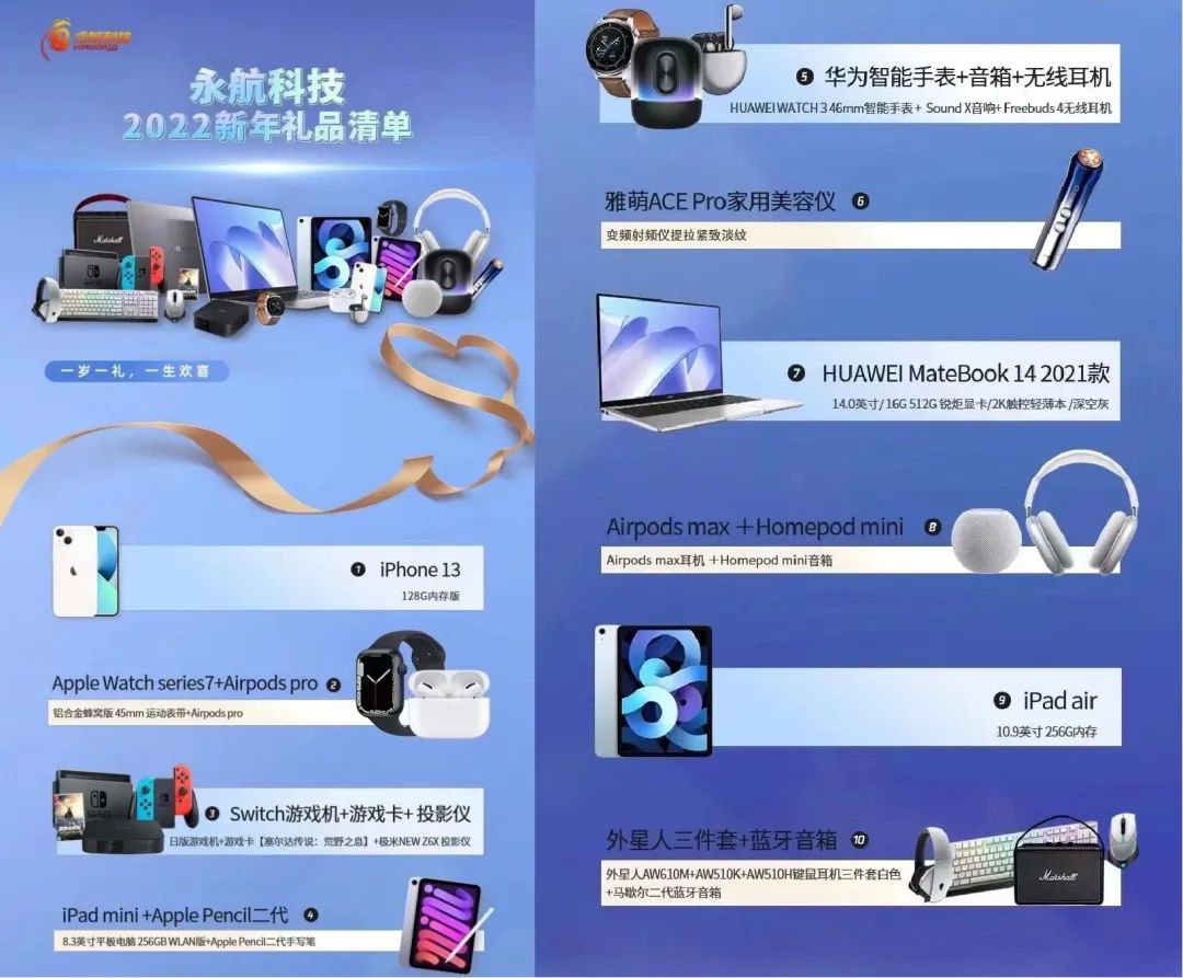 最後,北京游戲圈也不甘示弱,比如永航科技的新年禮品清單也不乏iPhone、NS等熱門數碼產品。