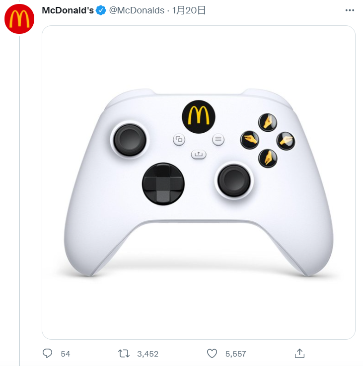 麥當勞回復一張附帶「手捏」表情的麥當勞主題Xbox手柄。
