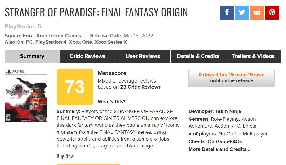 《最終幻想起源:天堂的陌生人》即將於3月18日正式發售,今晚7點本作的媒體評分解禁:IGN 8分,MTC平均分73分。