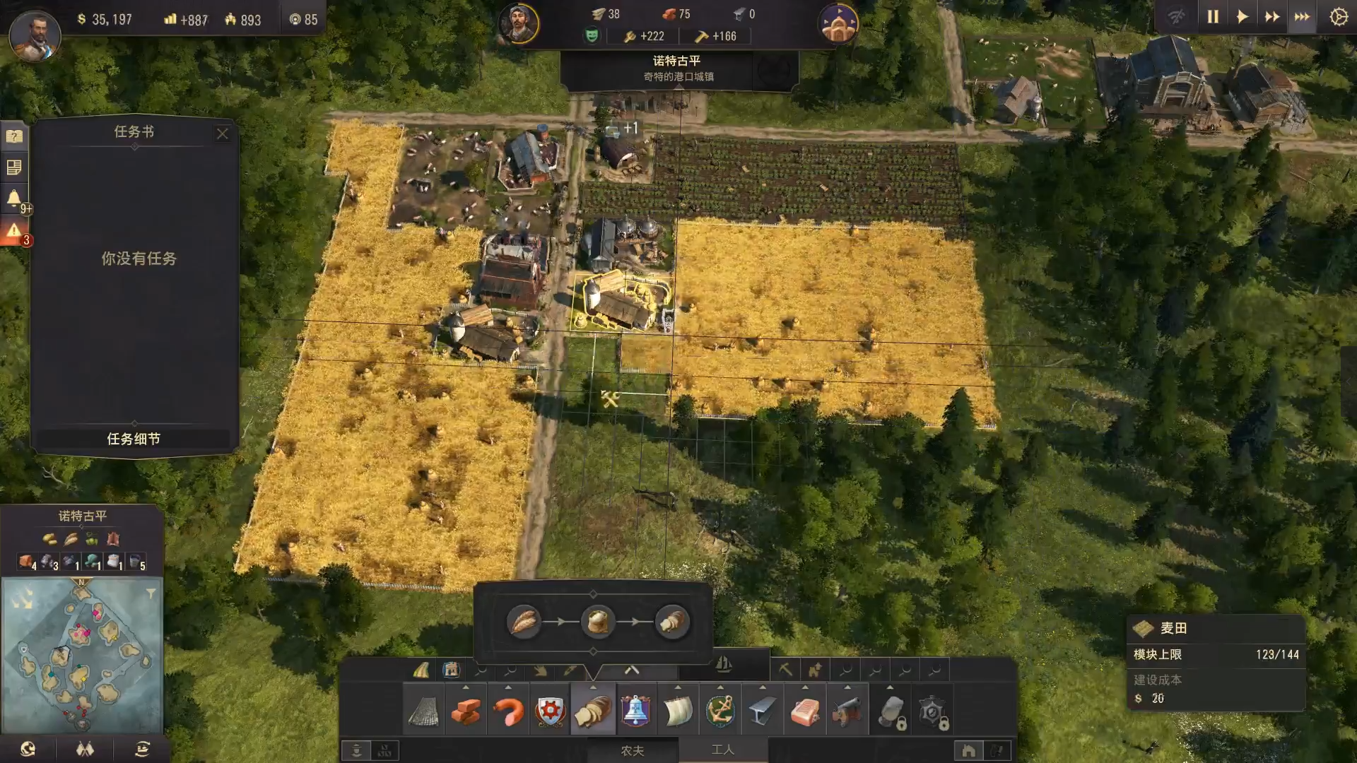 要想生產出麵包,就必須建造工人階級下的三種建築物:谷地、磨坊、麵包房。