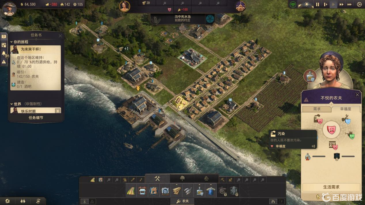 想要獲得更高的經濟收入用來維持、建造和升級各種設施,就需要更多和更高級的工作人口,但更高級的工作人口又會帶來新的需求,否則人口增長也會陷入停滯。於是一種「螺旋上升」的玩法邏輯就形成了:首先是「更多」——住房在建設之初只有1人口,當提供了那個階層人口需要的生活物資(需要在附近建立市場來供應)時,人口就會增長:比如農民需要工作服、魚*和烈酒。
