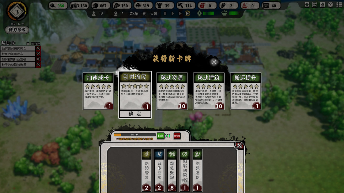 萬丈高樓平地起,那不是樂趣,那是開掛。也正是因為在《天神鎮》里存在「神仙外掛」的原因,會導致整個遊戲的資源並不是像《環世界》、《缺氧》、《戴森球計劃》等等遊戲那樣緩慢的爬升,從始至終一直維持著動態平衡的關係,而是會出現相當大的起伏。例如兔頭使用「資源整合」就會導致前期木材儲量猛增,一直持續到中期這個數字都維持在3K以上。