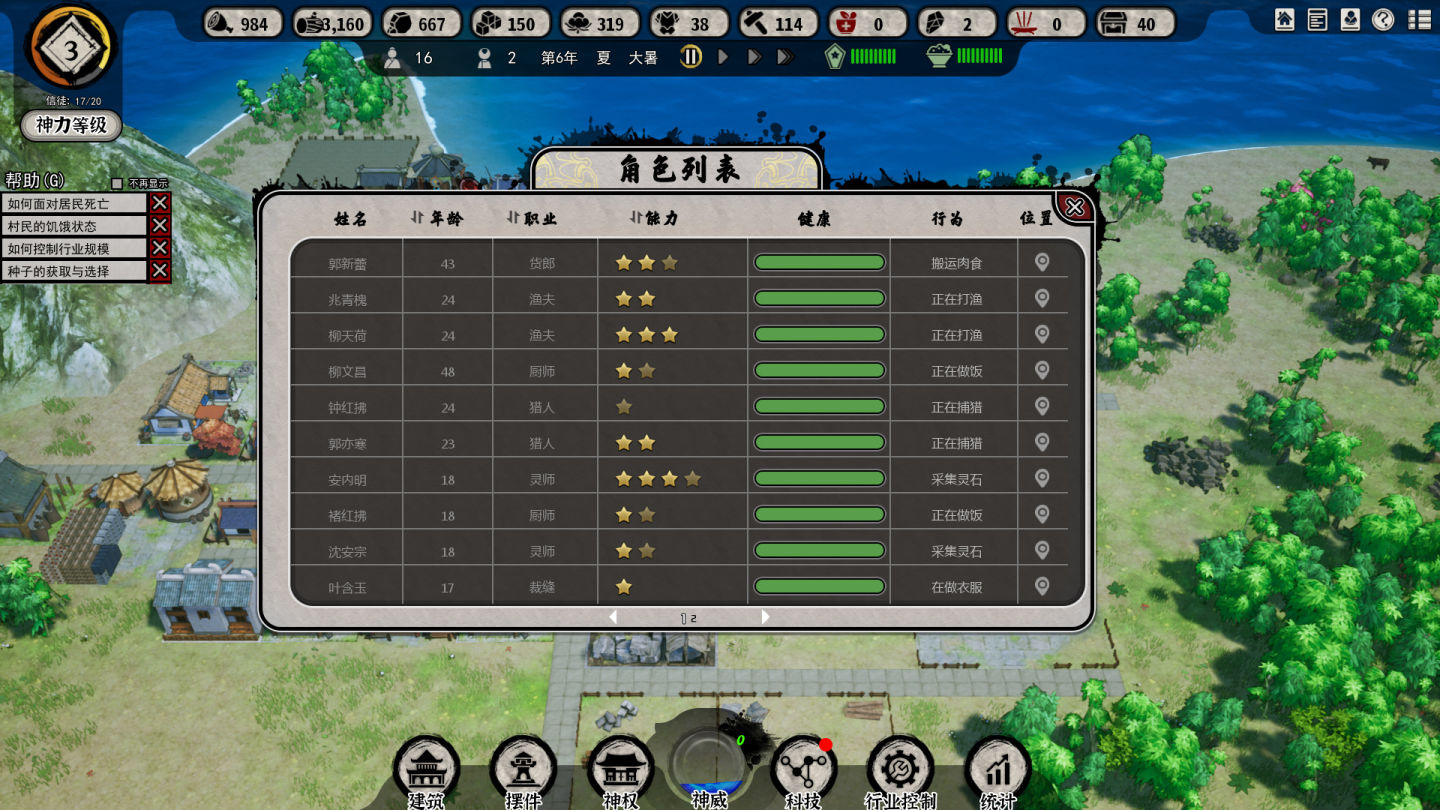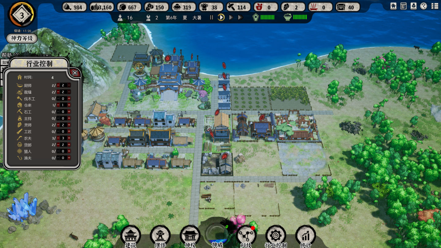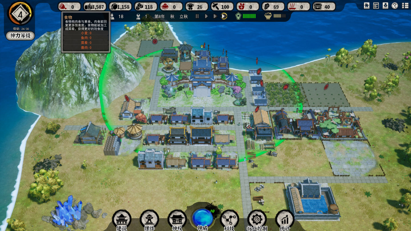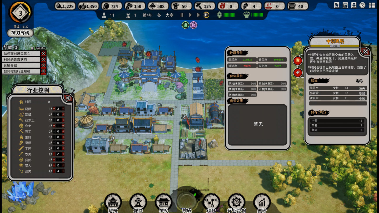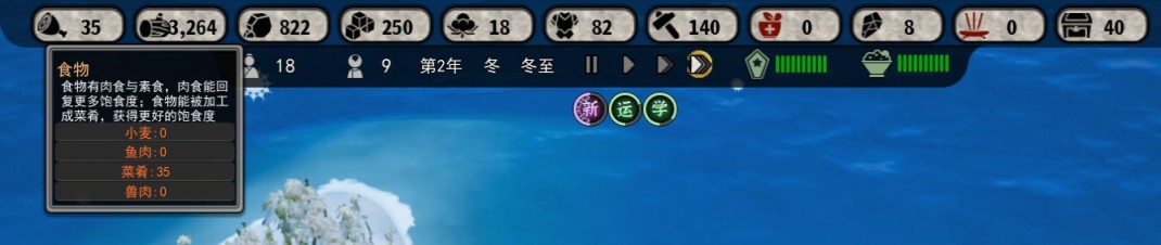 另外因為缺乏可靠的統計系統,在建造規劃的時候也很難把握現在這個人口要造幾個田,要造幾個漁場,這種尷尬的情況。在任何經營模擬遊戲里,都必然需要一個統計面板,比如《戴森球計劃》的動態產出/消耗對比,但是本作真的就是只能憑借廢掉幾個檔之後的經驗來做決定(本作也有統計面板但是沒什麼用)。