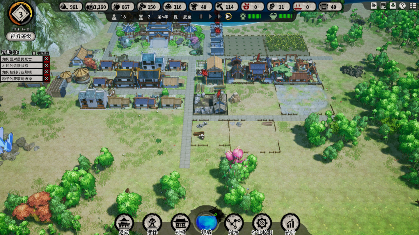 在《雙點醫院》里是建更多更好的設施接待各種客人,把醫院做大。在《環世界》、《缺氧》里,就是別讓你的小人死了。所以當然,在本作《天神鎮》里,同樣是讓你的住民好好活著照顧好他們,同時阻止妖獸的攻擊。