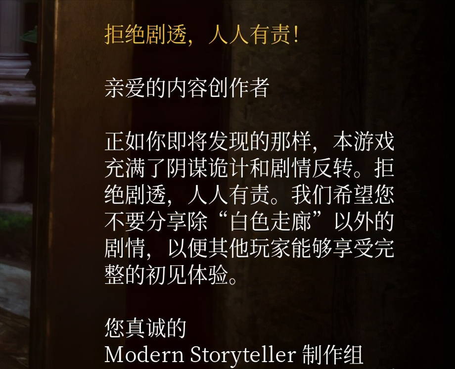 遊戲的劇情是整個遊戲的核心,因此本文不會劇透,官方也建議玩家之間不要劇透,否則會喪失很多樂趣。
