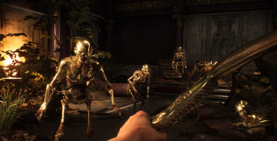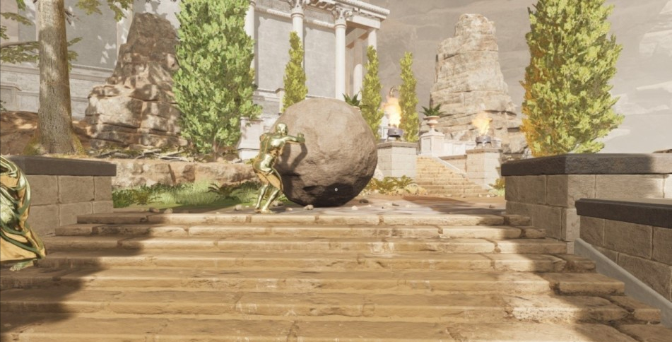 值得一提的是,遊戲中可以看到一個黃金雕像,推著一塊石頭,這不正是那個推石頭的西西弗斯嗎?日復一日的循環,永遠逃不出的古老的詛咒。那個有些瘋癲的老太太嘴裡也念叨著西西弗斯的悲劇。明顯在暗示,主角就像推石頭的西西弗斯一樣,不斷循環,一直向前。