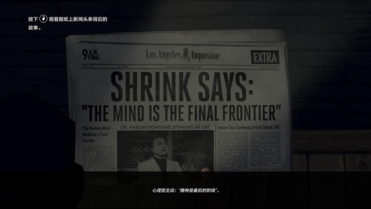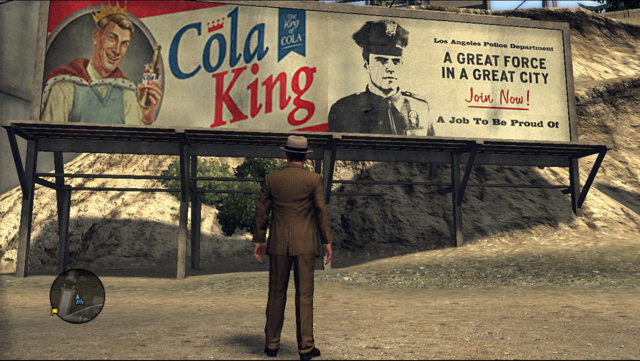 遊戲也具有搜集任務,玩家可以在高度還原的洛杉磯街頭探訪那個年代有名的地標,收集LAPD的警徽,尋找好萊塢的膠片,閱讀街頭的報紙(報紙閱讀時是按動畫的形式展現背後的故事,背後隱藏的故事往往比報道出來的陰暗的多或與報道的內容相反,這里是在嘲諷那些主流媒體么?),同時還可以收集那個年代的車輛(遊戲有一個成就是駕駛過所有的車輛,我印象中一共有90多輛)