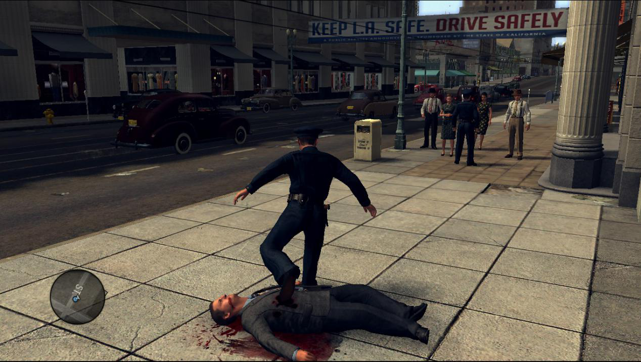 遊戲能讓玩家真實的體驗到一個洛杉磯警探的從警生活。玩家在遊戲中會面對各種屍體,有吸毒過量或吃安眠葯沒有任何外傷痕跡的屍體,有因為車禍死亡血淋淋的屍體,有槍擊火拚後被打的像馬蜂窩的屍體,有被火燒碳化的屍體,特別在兇殺科的章節裡面玩家甚至會看到被勒死後施暴的裸體女屍。遊戲中玩家不是遠遠的觀察這些屍體,而是能近距離觸碰屍體收集證據或者是對比屍體上的勒痕。甚至在遊戲中從屍體上走過去時不會出現那種僵硬的需要玩家手動按跳不然會被屍體卡住的現象,而是動作動畫自動變成跨過去,細節滿分。