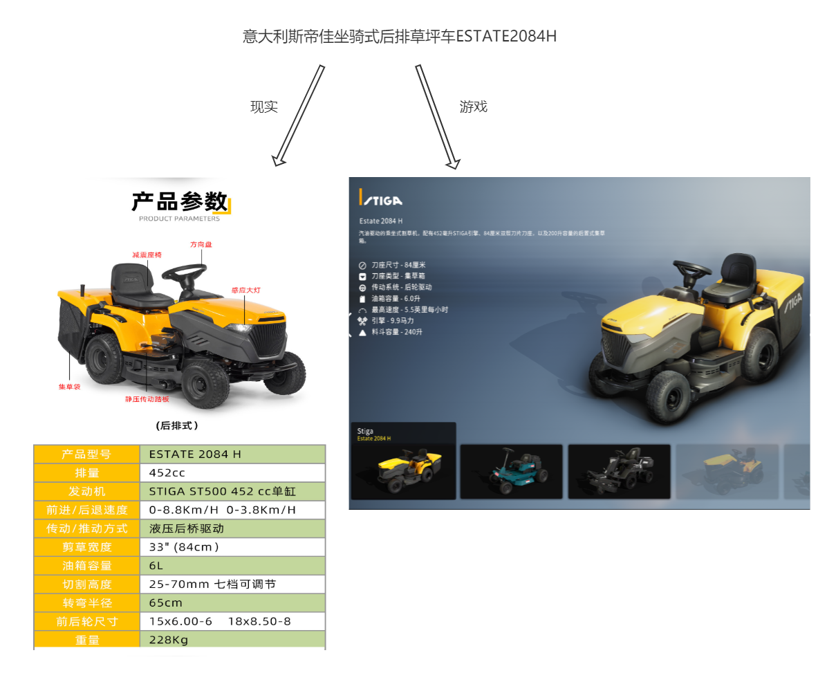 在選擇過程,老熊發現了遊戲中令人驚訝的細節,你所選擇的割草機都有著現實中的真實版,裡面的各項參數都設置得非常一致,不愧是得到著名製造商Toro、SCAG和STIGA的特別授權的產物