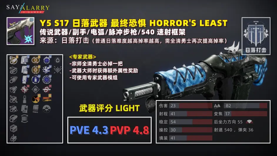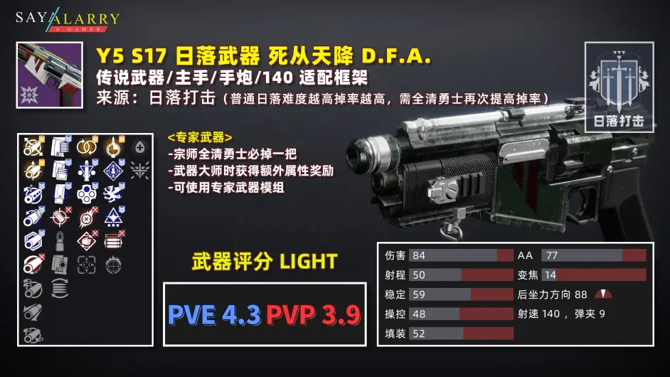 PVP可以留一下當做備用手炮:鍛造膛線/小口徑+精確彈藥+永動/脆弱+延遲載荷+大師射程
