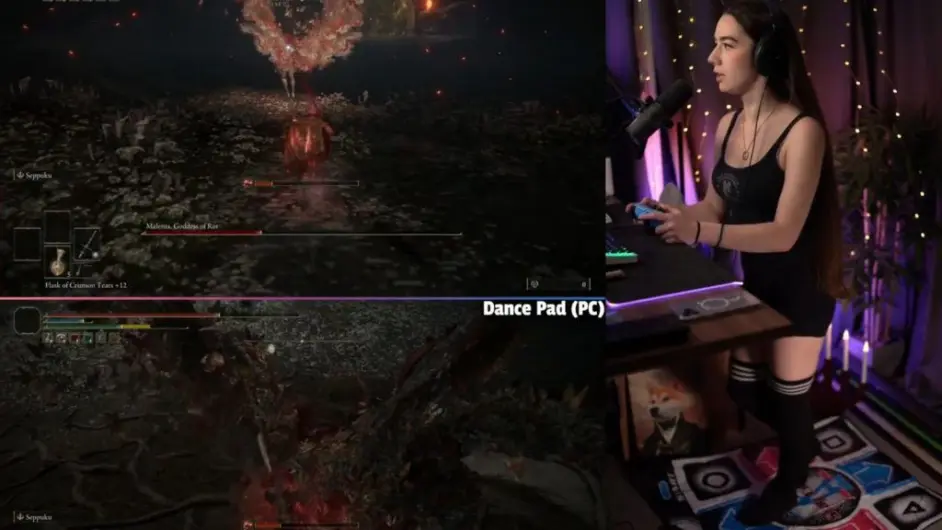 這位主播已經用一隻手擊敗了Elden Ring,然後再次使用舞蹈墊。現在她把兩者結合在一起,只剩下拉達貢和埃爾登野獸要打敗。
