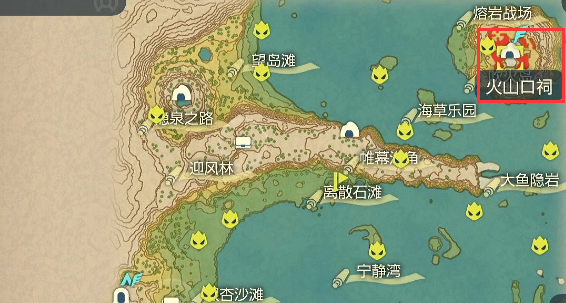 1、首先打開遊戲地圖,進入到火山口祠裡面。